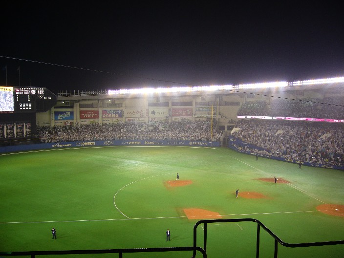 この日も満員。外野方面を開放しても立見が出ていました。試合はのっけから審判のミスで始まるという波乱の幕開け。捕手が2塁送球の際、球審が捕手に触れてしまい捕手が送球できなかったため、盗塁はなかったことに。ええええええええええええーなんだそれ。最近審判の本を読んだばかりだったので、審判員が自らのミスを認めて「私が触れてしまったため」と明言したのは勇気あるな、と思いましたけど、それにしても岡田君がいいスタートを切っていただけにこのつまずきは大きいな…とがっかりしました。その後もジャイアンツ疑惑のHRが2本も。なんだそれ…。ロッテの監督から抗議があったにもかかわらず放送による説明もなく、竹原のグランドスラムもあったのですが5-9で敗戦。優勝を逃してしまいました…orz