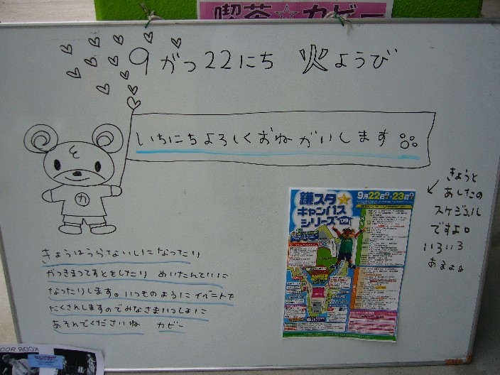 きゃらくがきならぬカビーからのごあいさつ。
