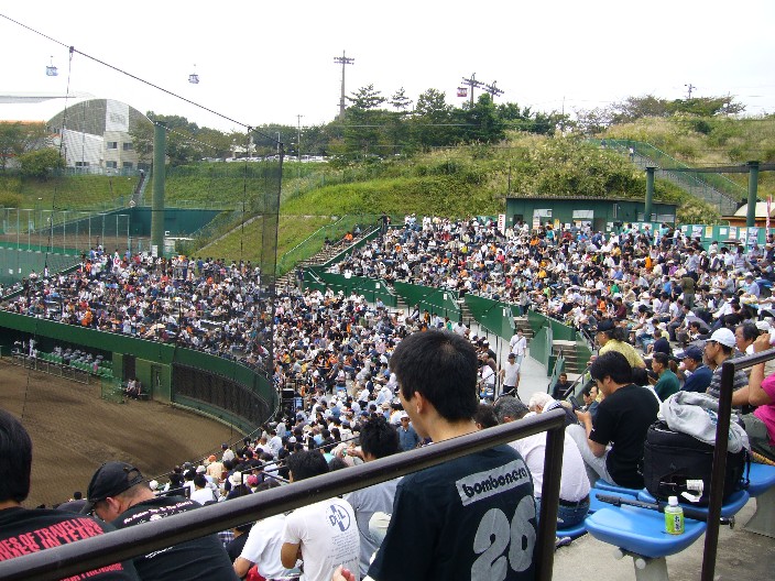 マリンに行くかファームの優勝決定戦を見に行くかで朝からずっと悩んでいたのですが、まあマリンはTV録画を後から見られるし!と割り切って京王よみうりランドまで遠征してきました。遠かったー。駅からシャトルバスが出ていて良かったです。よみうりランドってものすごい丘の上にあるんですね。登っていくなんて無理無理。