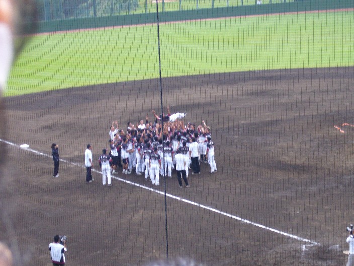 で、その観戦中、後ろに座っていた年季入ってる感じのロッテファンのグループの方達がずっと1軍のリアル中継をしているのが聞こえたのですが、西岡の応援ボイコットとか堀さんHRとか大量得点とかその後唐川突如崩れて追いつかれたとか(笑)いろいろそわそわさせられました。結局7-7の引き分けだったそうで、家に帰ってから録画を見たら、結構球場全体が騒然としたそうで、見に行きたかったな~とちょっとだけ後悔。でもG球場でコミさんの10回胴上げとサカタ監督の胴上げも見られたのでなんとも言えないんですけど(^^;